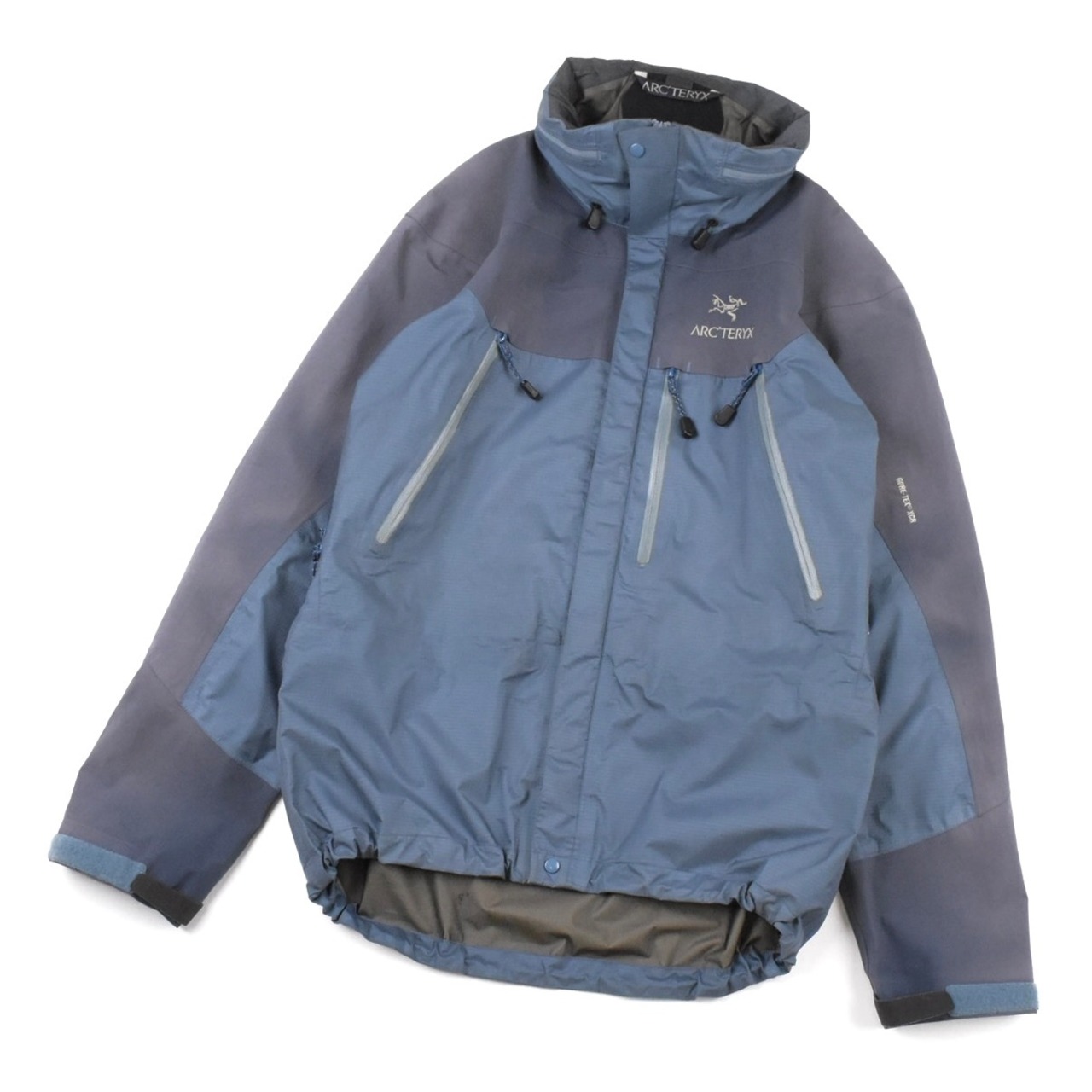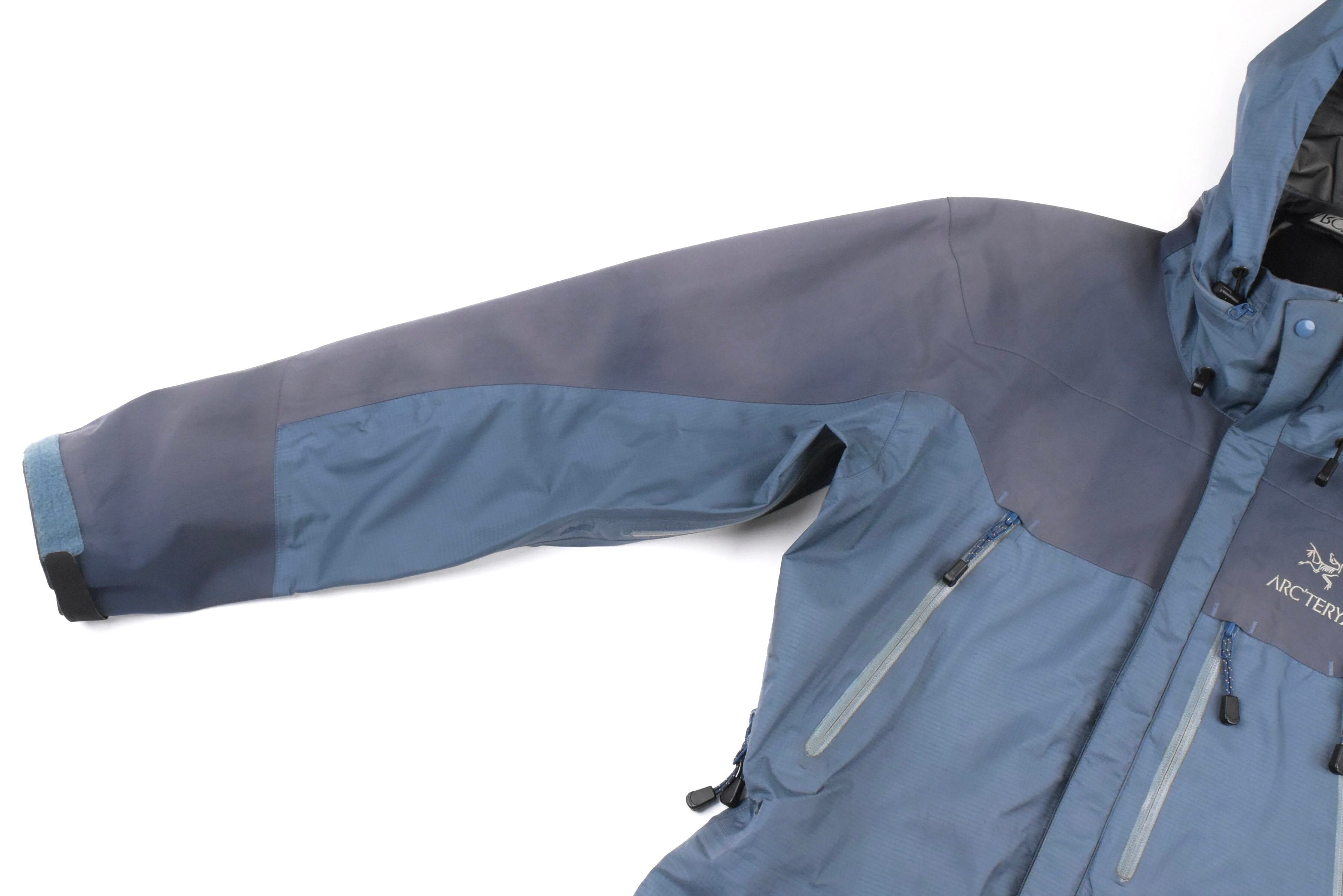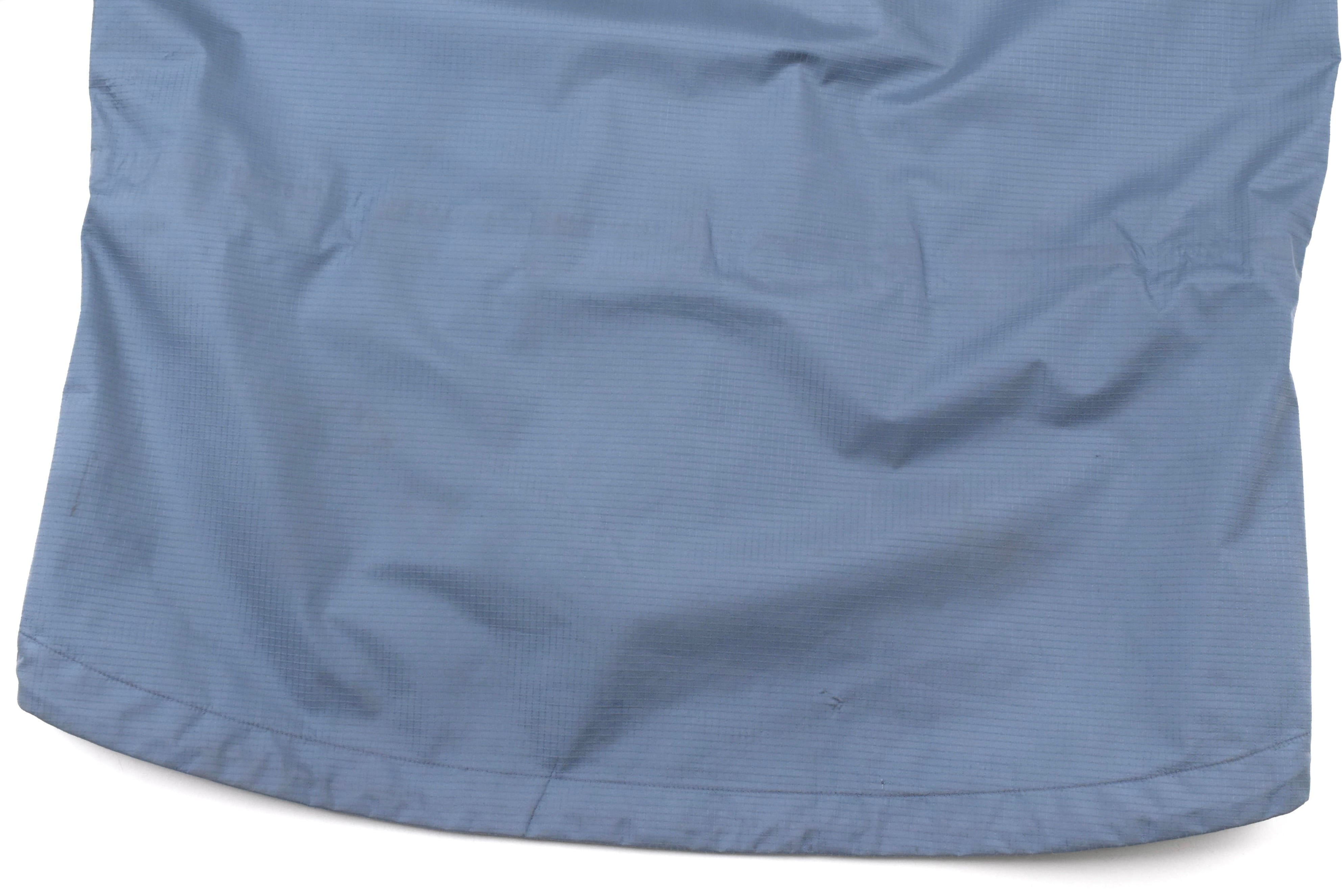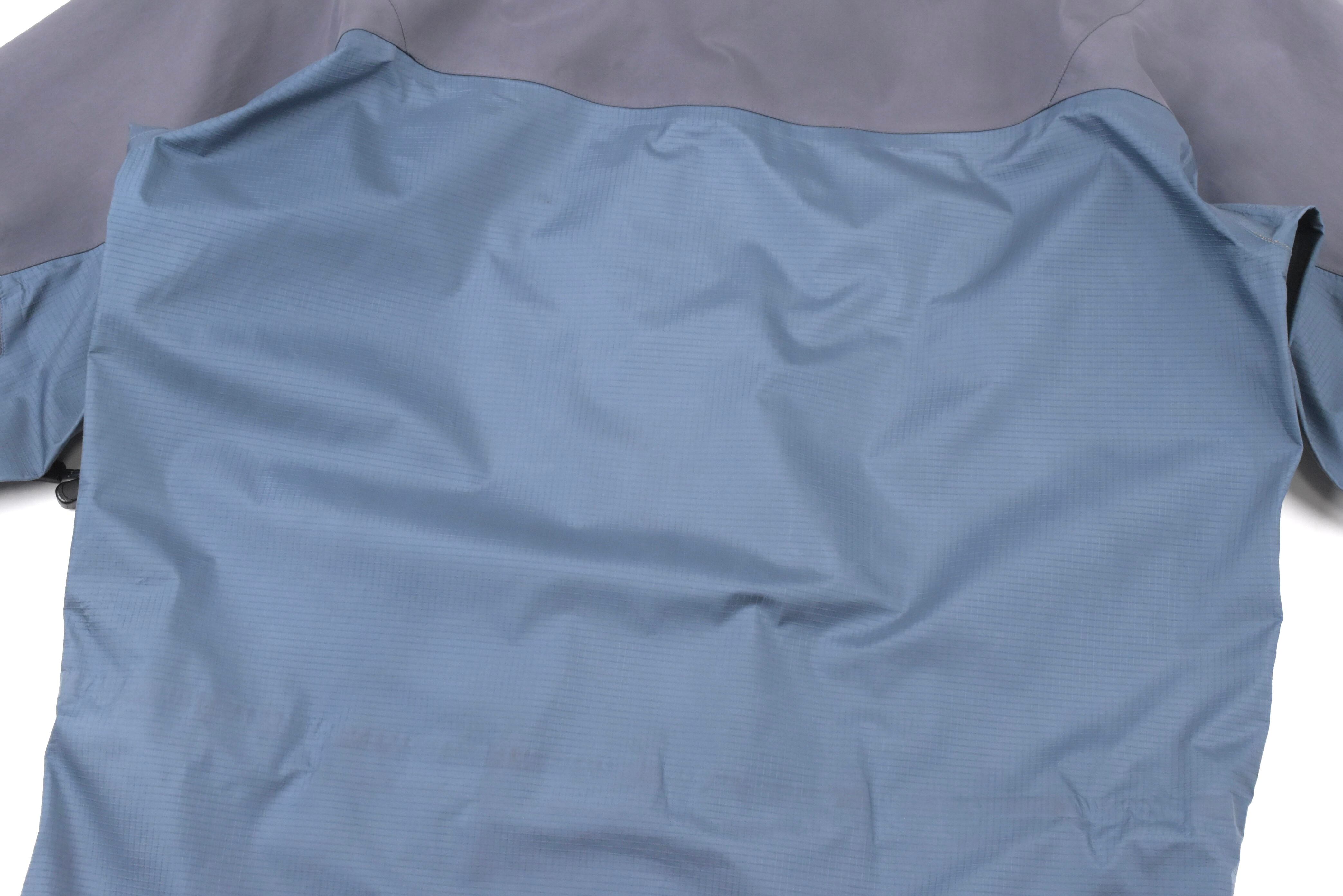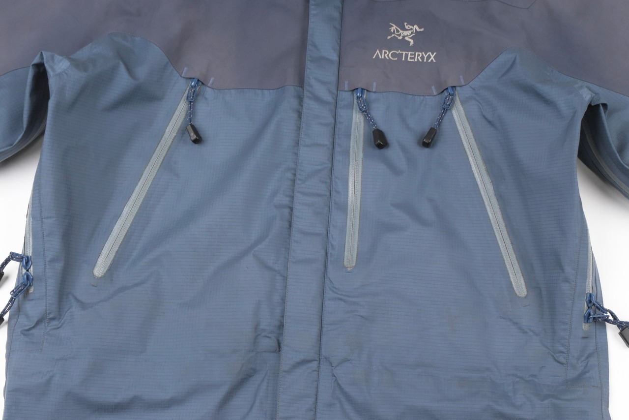 【説明】Made in Canada / 近年ますます流通量が減少しているシェルジャケットが入荷しました。特に昨年頃からは良好コンディションの個体がほとんど見られなくなっており、その中でも本商品は希少な1着です。ジップ周りの年代相応の経年劣化に加え、全体的にスレ・ヨゴレ・日焼け・軽度の浮き・極小のキズなど、ヴィンテージ特有の使用感はございますが、重要なシームテープは良好な状態を保っており、機能面にも影響はございません。なお、撮影時にライトを当てているため、写真では日焼けが強めに見える箇所がありますが、実物はそこまで目立つものではございません。市場でもほとんど見かけなくなった希少な “Smoke” カラーの個体で、今後の入荷が見込めないカラーリングです。総合的に見ても、依然として価値ある1着となっております。相場を考慮してお値段は抑えておりますので、この機会にぜひご検討ください。