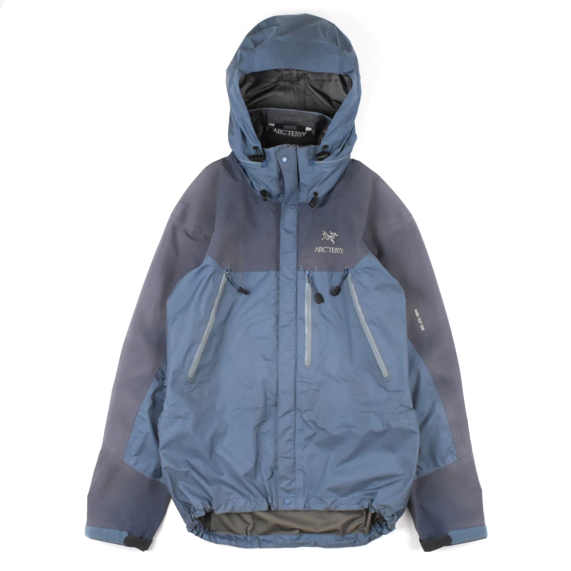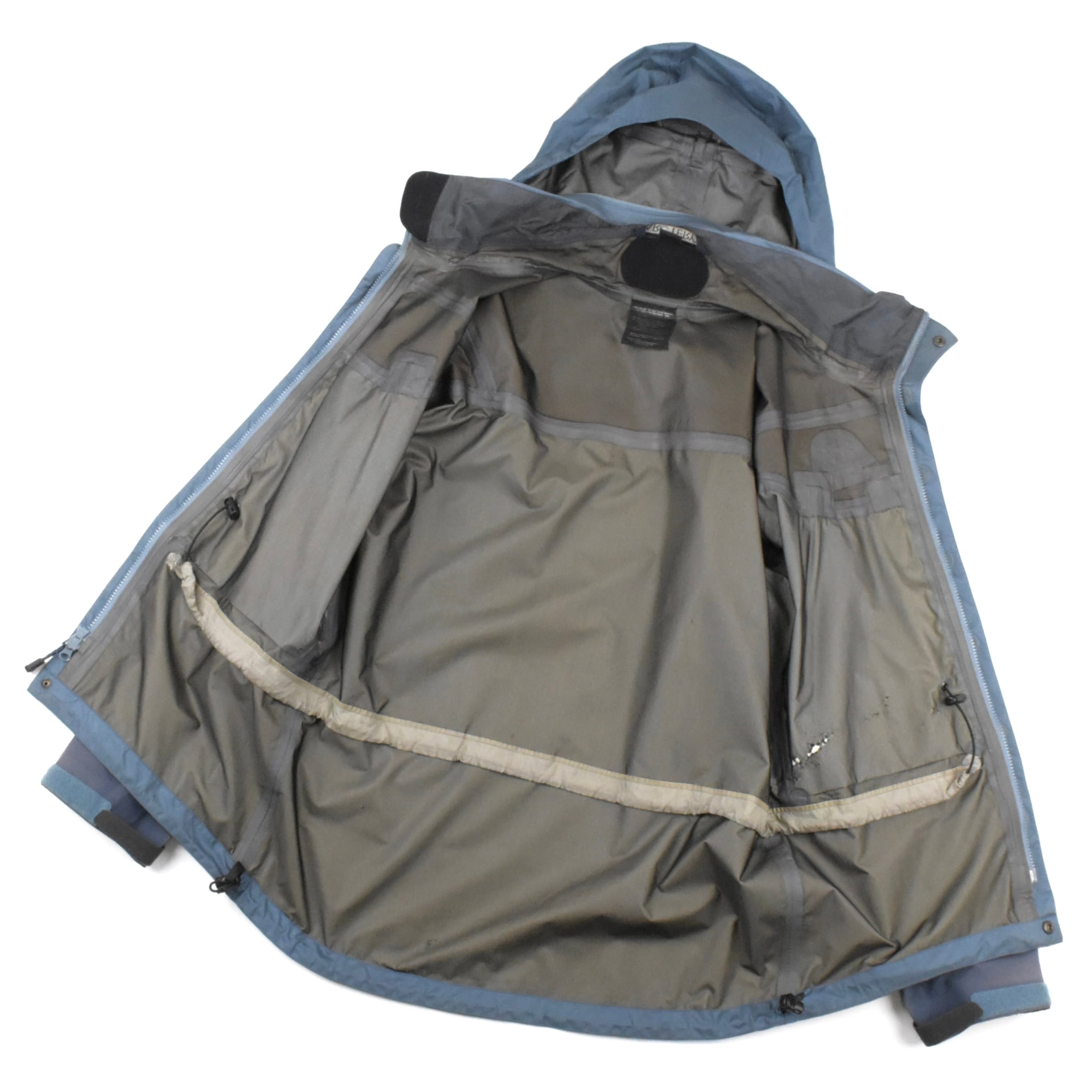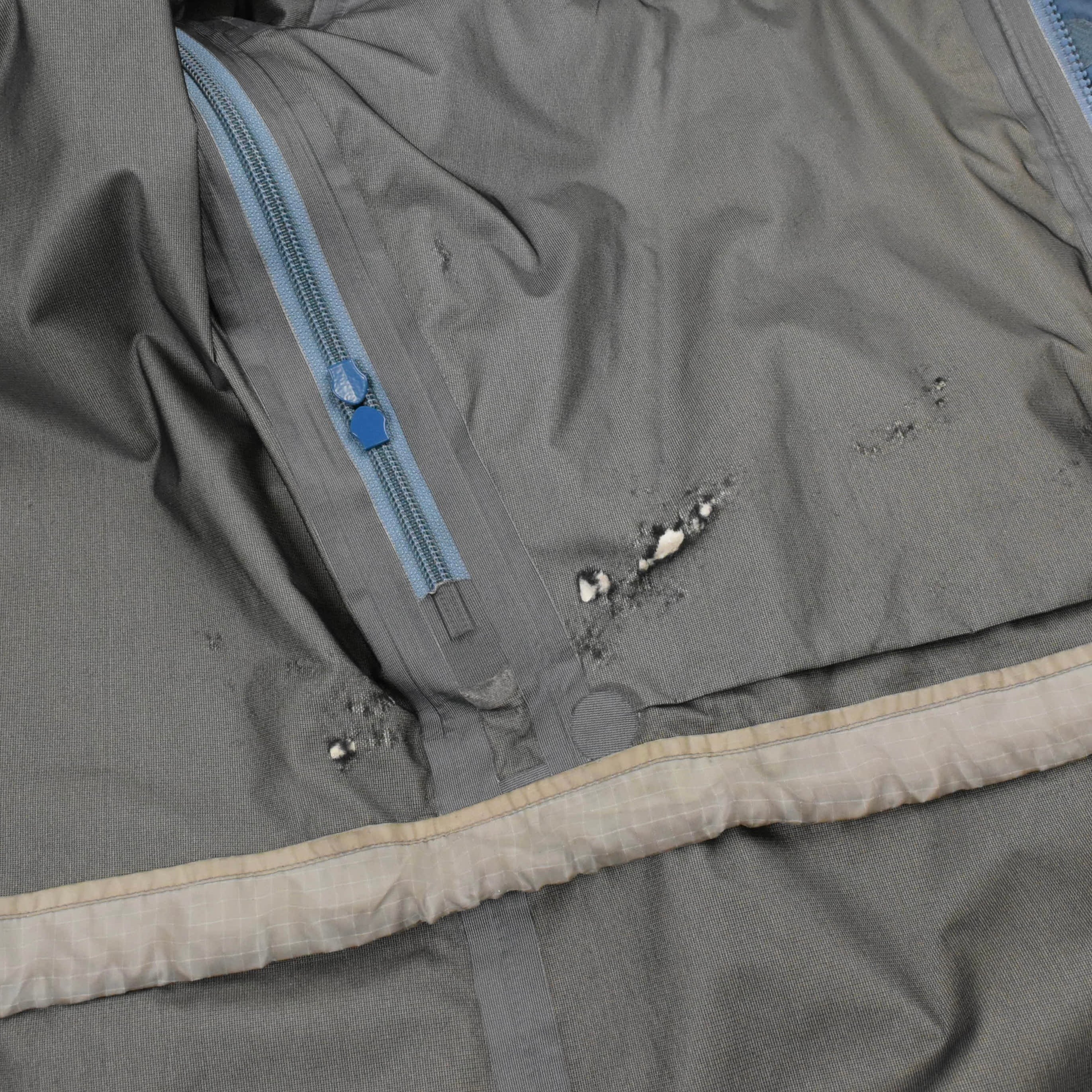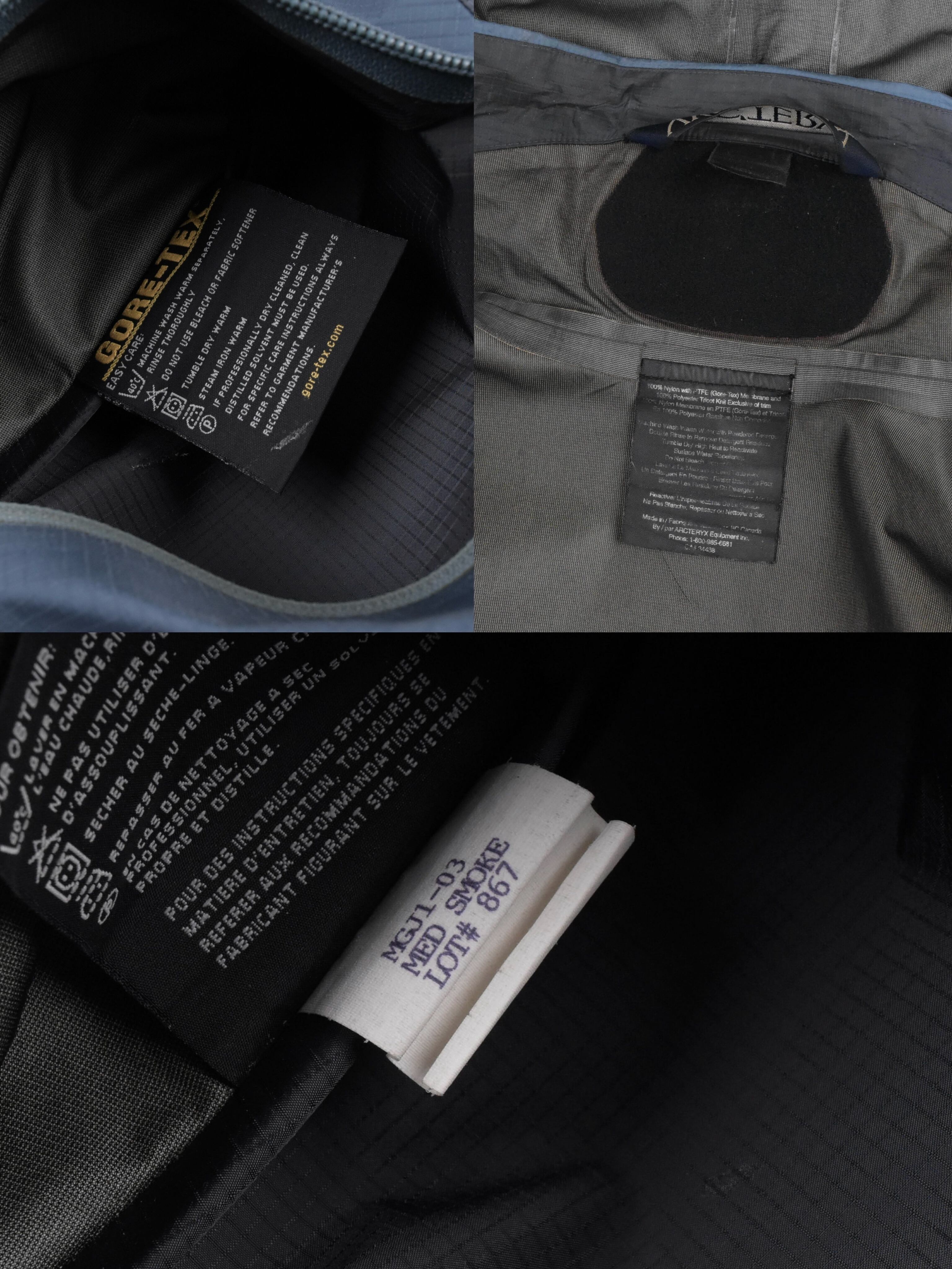 【説明】Made in Canada / 近年ますます流通量が減少しているシェルジャケットが入荷しました。特に昨年頃からは良好コンディションの個体がほとんど見られなくなっており、その中でも本商品は希少な1着です。ジップ周りの年代相応の経年劣化に加え、全体的にスレ・ヨゴレ・日焼け・軽度の浮き・極小のキズなど、ヴィンテージ特有の使用感はございますが、重要なシームテープは良好な状態を保っており、機能面にも影響はございません。なお、撮影時にライトを当てているため、写真では日焼けが強めに見える箇所がありますが、実物はそこまで目立つものではございません。市場でもほとんど見かけなくなった希少な “Smoke” カラーの個体で、今後の入荷が見込めないカラーリングです。総合的に見ても、依然として価値ある1着となっております。相場を考慮してお値段は抑えておりますので、この機会にぜひご検討ください。