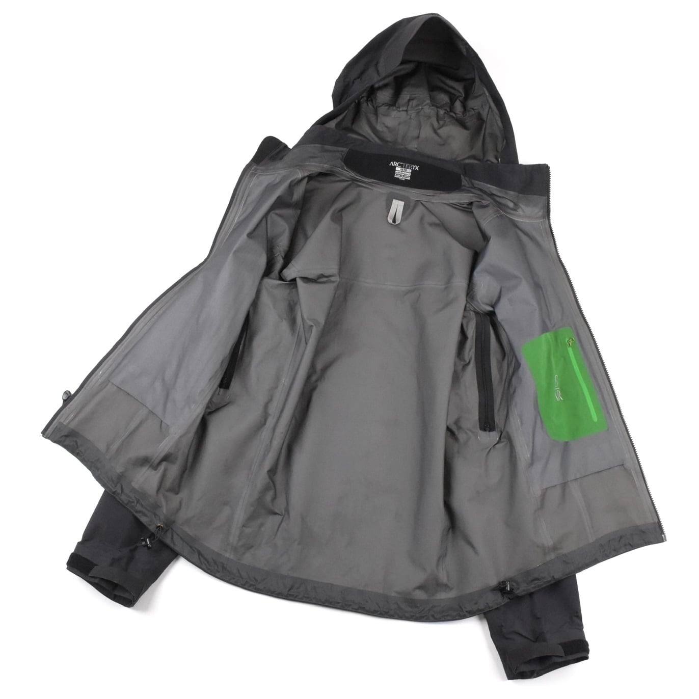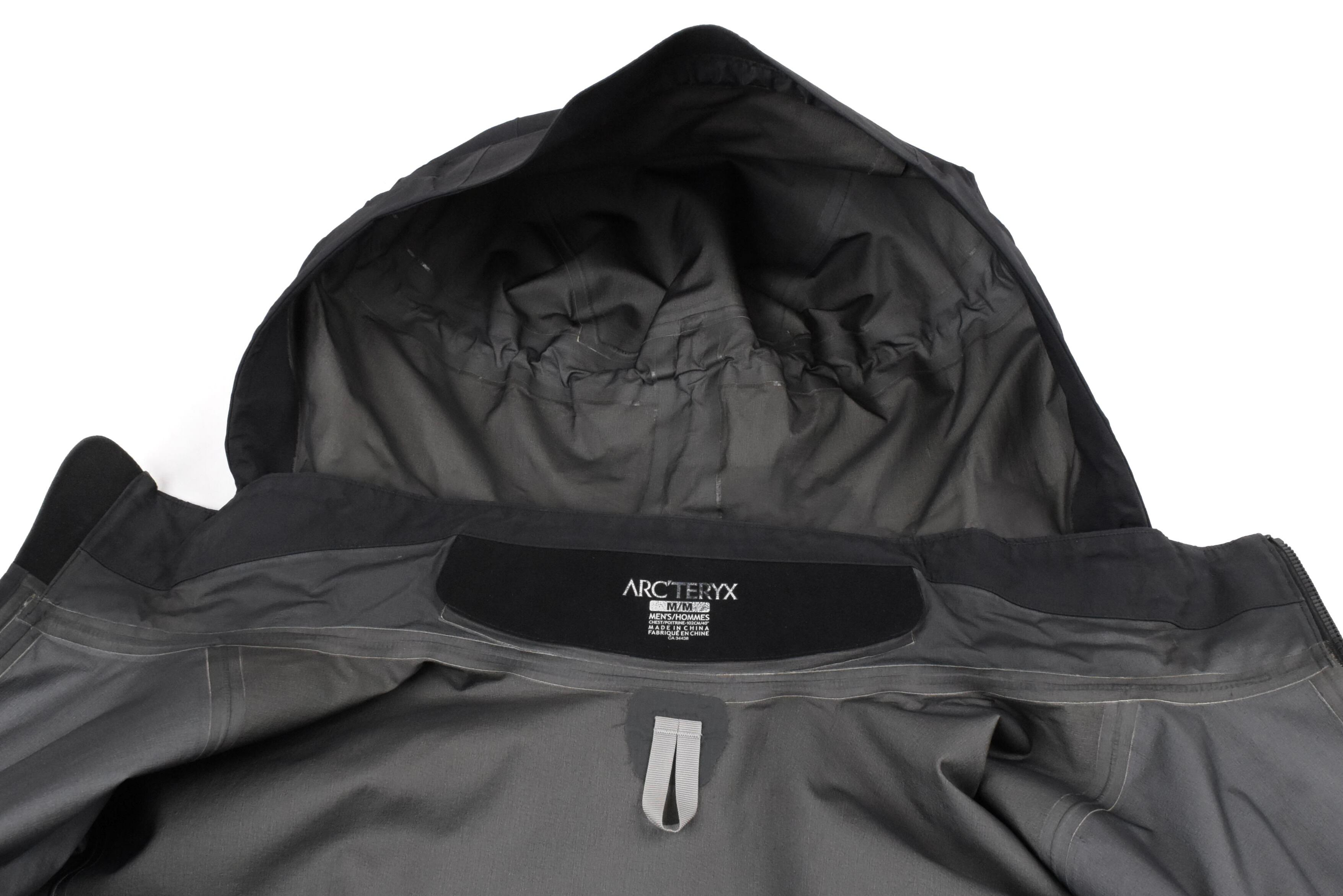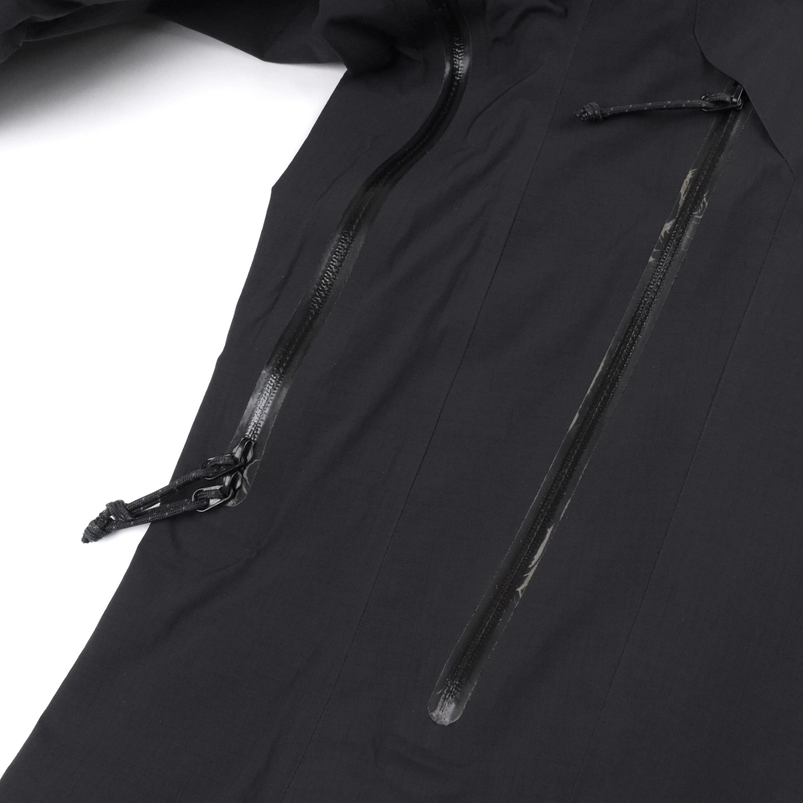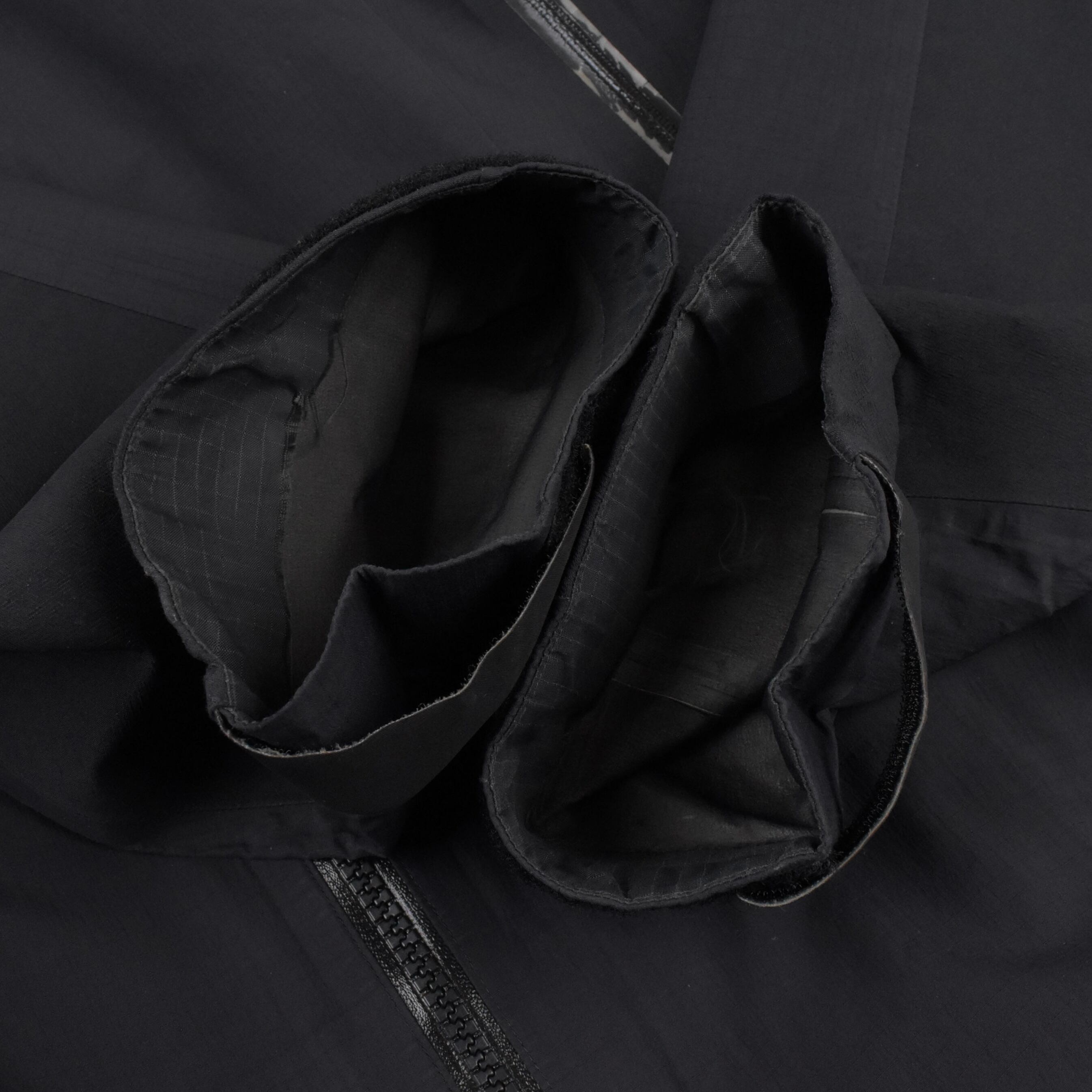【説明】全体的に表面・内側ともに浮きが見られ、袖口内部に一部剥がれ、ドローコード下部にも小さな剥がれ(写真10)がございます。また、止水ジップのコーティング部分にやや劣化が見られます。