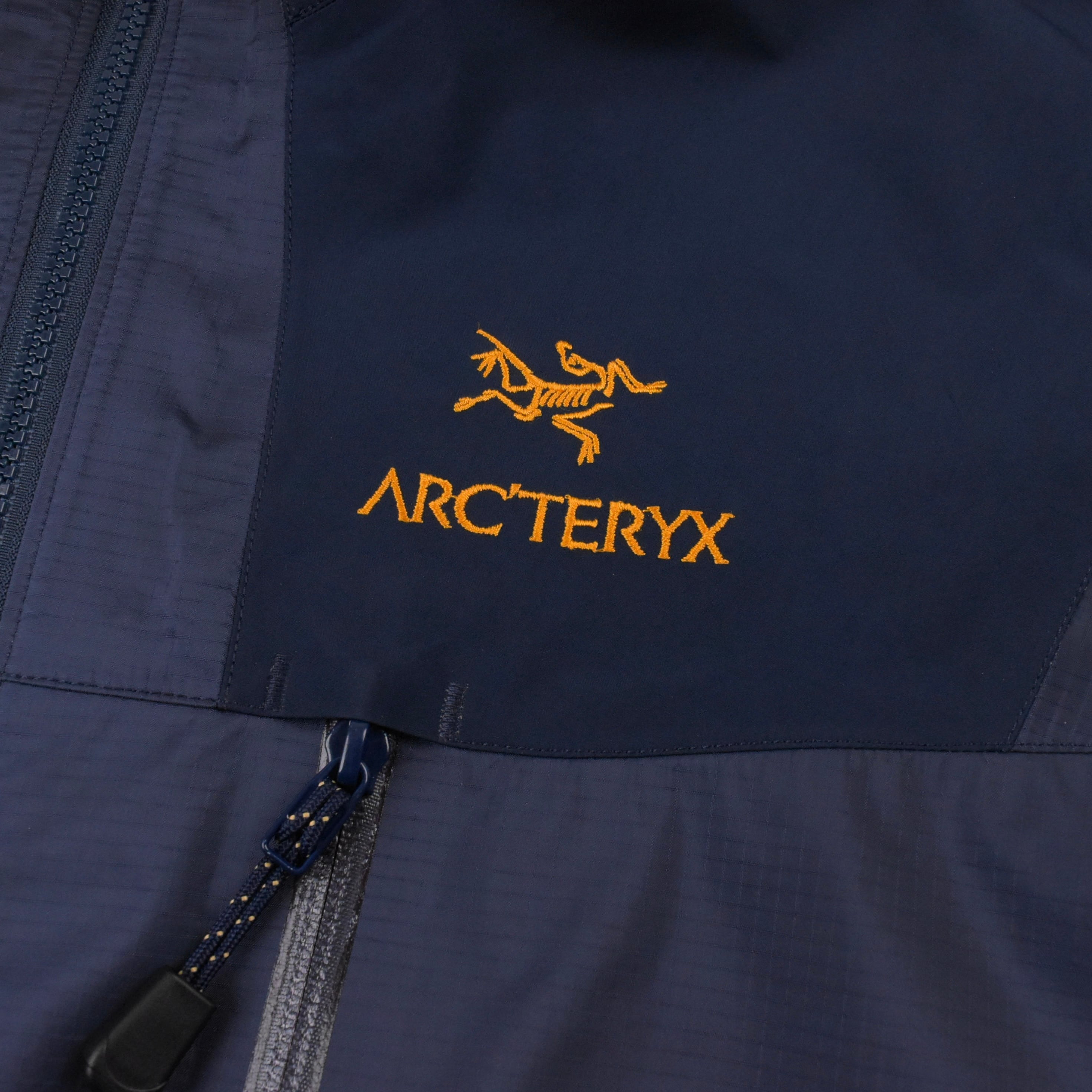 コンディションに関しては、テープの剥がれはなく、目立つ汚れや浮きも見受けられず、全体として非常に良好な状態です。生地もパリッとした質感をしっかり保っています。胸部分のジップには経年によるごくわずかな劣化が見られますが、Arc’teryxの同年代の個体と比較しても、かなり良好な状態かと思います。